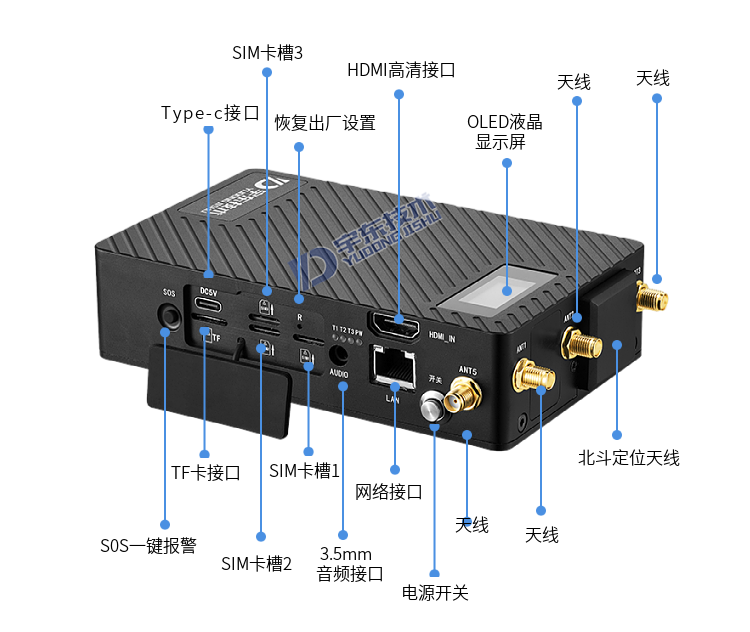 YD-GB5030-5G指揮通信裝備5G單兵圖傳,具備三個SIM卡槽,同時支持一個5G網絡和兩個4G網絡,5G+雙4G便攜式多卡高清視頻終端采用嵌入式系統架構,采用高性能H.265編解碼處理器設計。設備支持視頻采集、編碼壓縮、傳輸、雙向對講功能。