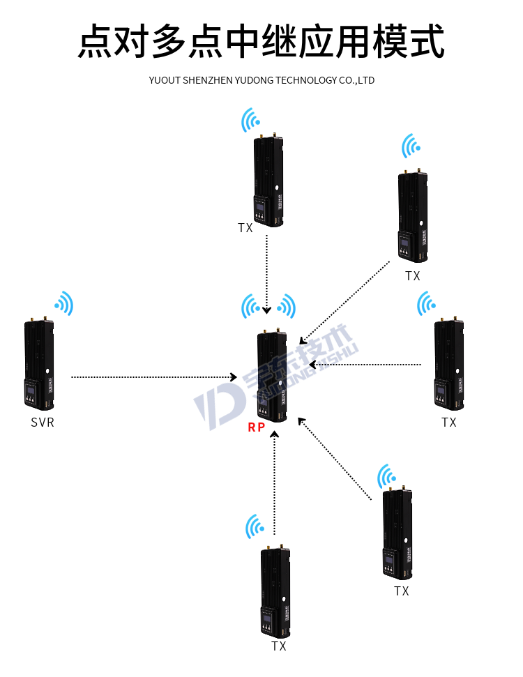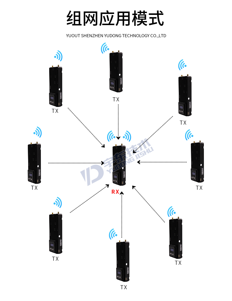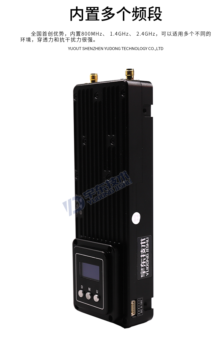 YDTD9000宇東視頻數據無線圖傳系統采用工業級無線高速率數據傳輸技術,非視距,非WIFI,集合正交頻分復用時分多址調制及MIMO多進多出容量技術,完全基于IP互聯網協議,實現全雙向透明通道寬帶傳輸。非視距:500-1000米;地面視距:3000-15000米;空對地:20000米。系統為純硬件連接,即插即用;創新性液晶一體化設計、豐富的CAN總線、RS-232、TTL電平接口,更好的用戶角度體驗。通道最大支持30Mbps吞吐量,可廣泛應用于工業自動化、工業機器人、無人機、視頻監控等通信工作。
