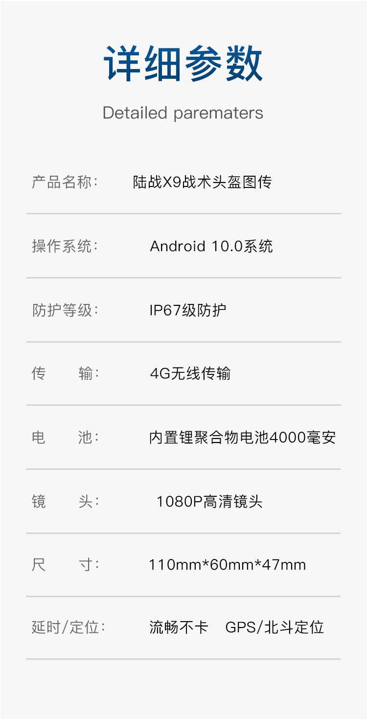 陸戰X6 4G戰術頭盔單兵無線圖傳是針對武警,特警,移動執法取證、行政監管等單人便攜式監控需求應用場景開發的專用設備,該產品采用高速處理器和嵌入式Linux操作系統,集超低照度彩色攝像機、音頻、4G和Wi-Fi無線通訊模塊、GPS/北斗、存儲、報警等模塊,配置高清夜視攝像頭及無線藍牙耳機。設備可通過4G、Wi-Fi無線網絡進行實時視音頻信息傳輸、語音對講等功能;協同后端功能完善的監控調度指揮平臺系統實現針對戶外移動式個體的遠程調度指揮功能。